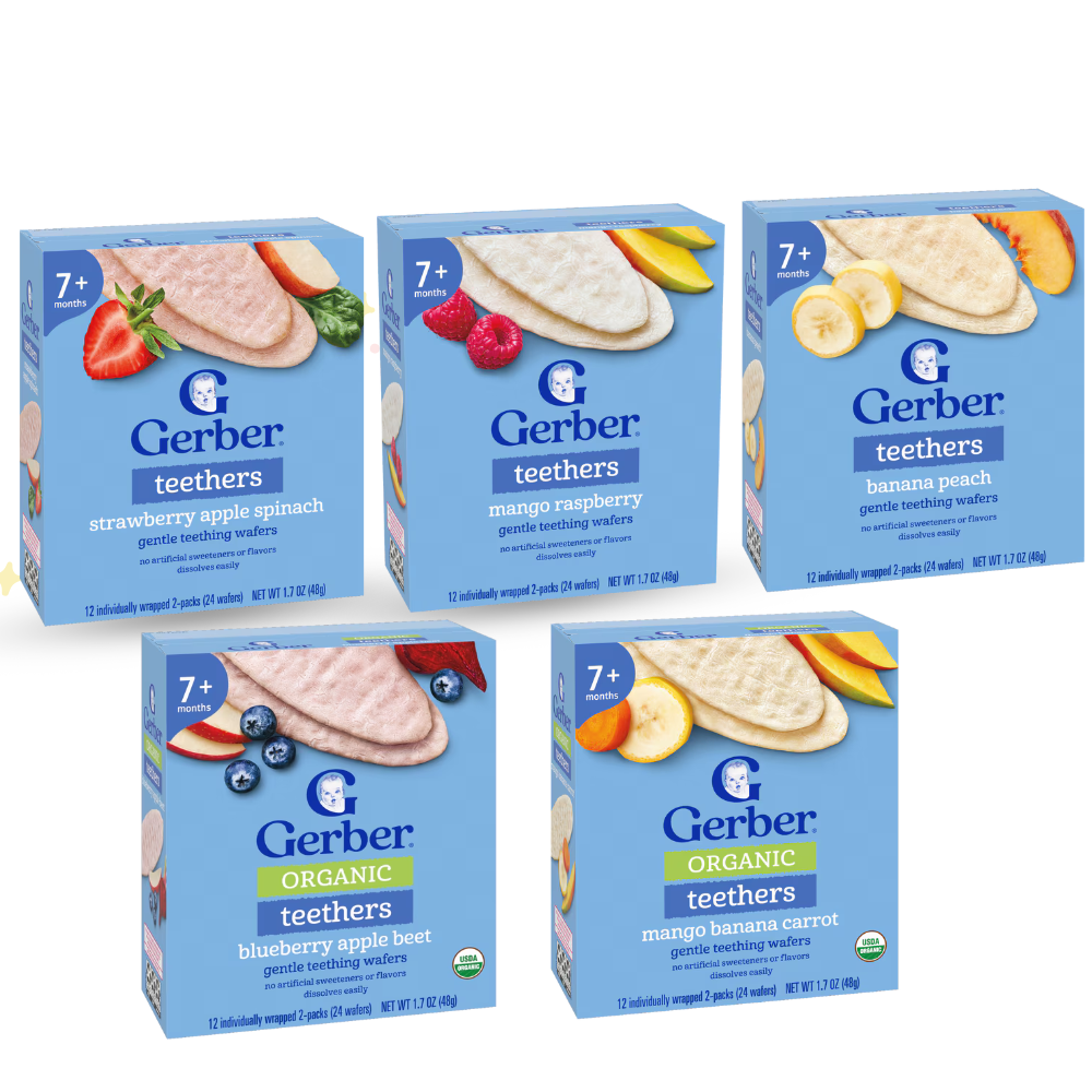 Gerber Teethers được thiết kế đặc biệt để giúp massage nướu, hỗ trợ giảm cảm giác khó chịu khi bé đang trong giai đoạn mọc răng. Khi bé cắn hoặc nhai bánh, kết cấu bánh sẽ tan dần trong miệng giúp bé dễ nuốt và hạn chế nguy cơ hóc. :contentReference[oaicite:2]{index=2}